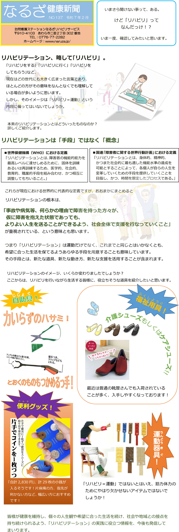 なるざの訪問看護スタッフ手づくりの月一回発行の健康新聞。