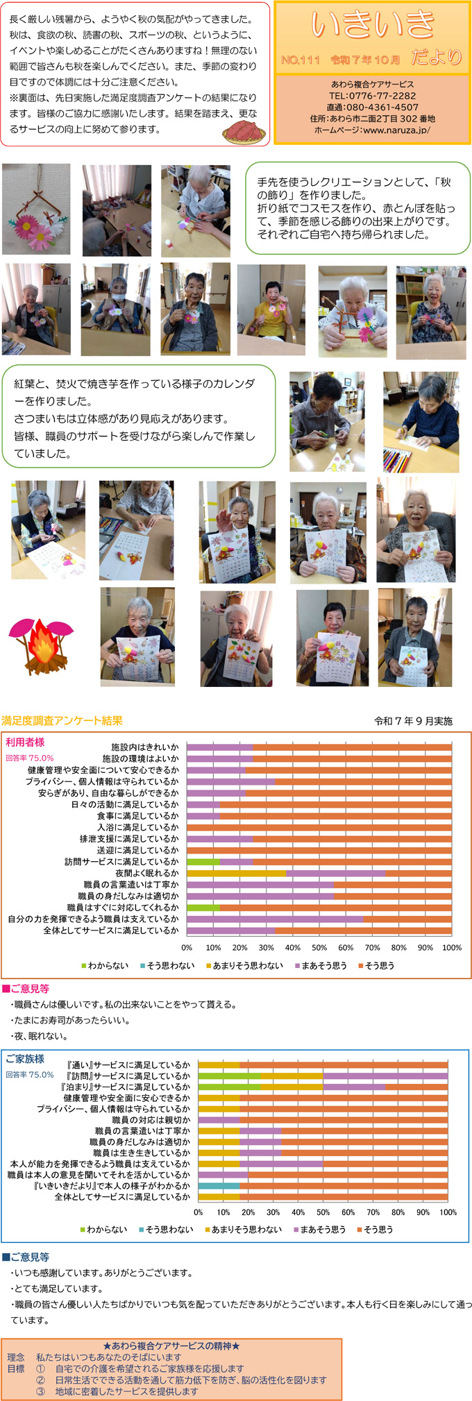 あわら複合ケアサービススタッフ手づくりの月1回発行「いきいきだより」。
