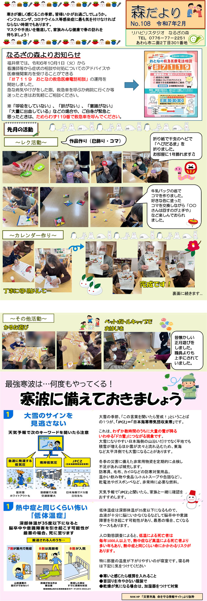 なるざの森スタッフ手づくりの月1回発行「森だより」。