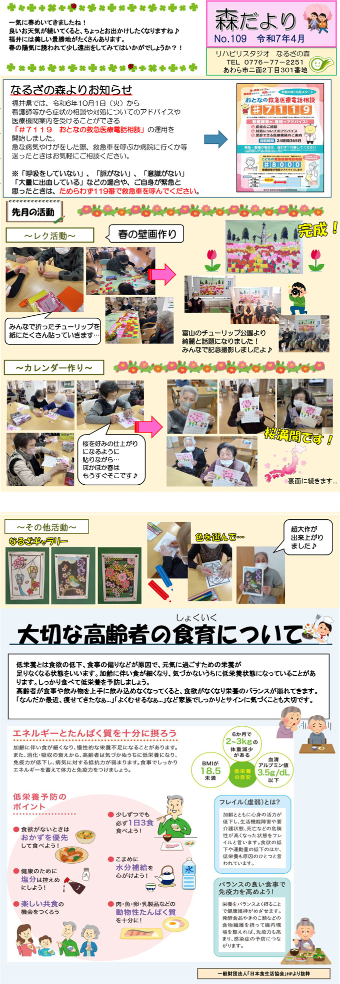 なるざの森スタッフ手づくりの月1回発行「森だより」。