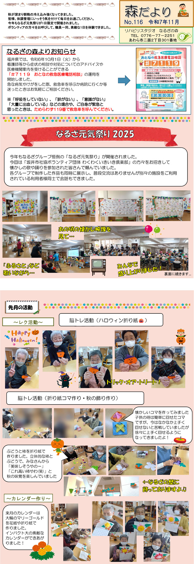 なるざの森スタッフ手づくりの月1回発行「森だより」。