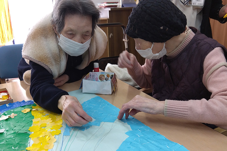 塗り絵やパズルなどの作業を提供し認知機能の低下を防ぐよう援助しています。
