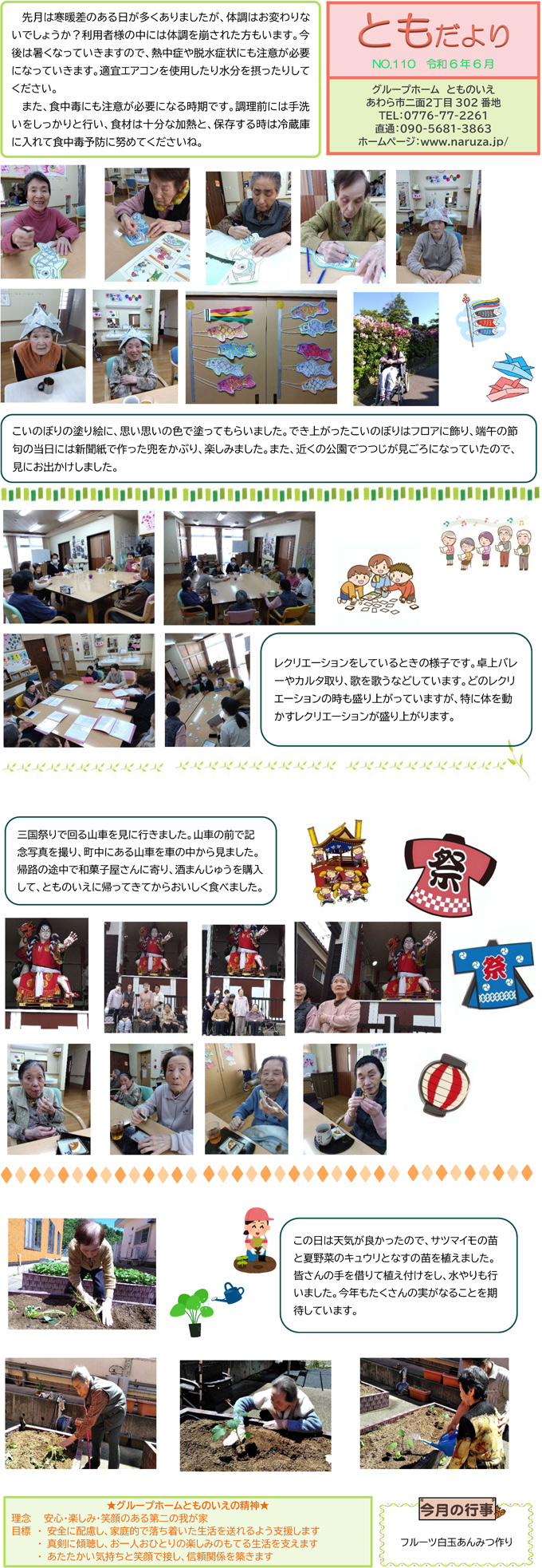 とものいえスタッフによる手作り新聞「ともだより」。