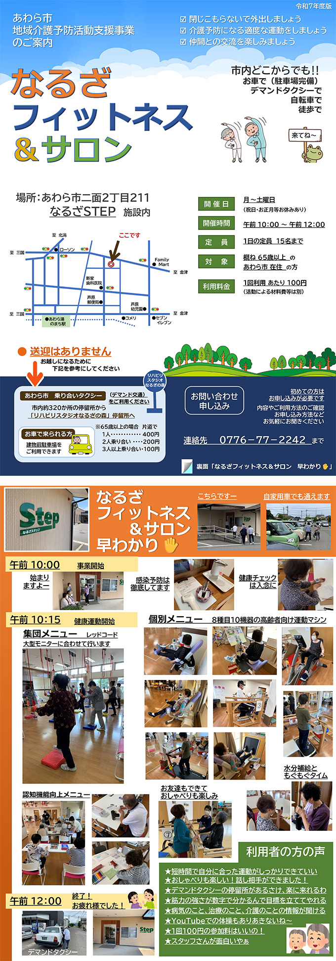 転倒防止、高齢者のための「なるざフィットネス」のご案内。