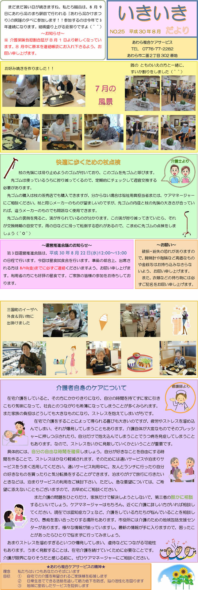 あわら複合ケアサービススタッフ手づくりの月1回発行「いきいきだより」。