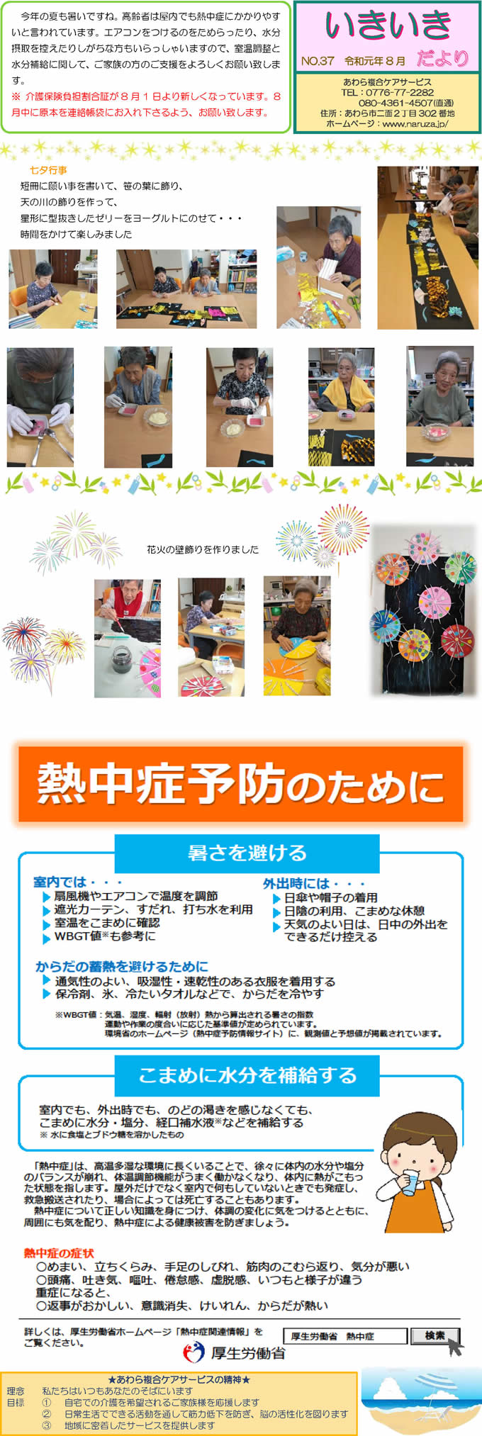 あわら複合ケアサービススタッフ手づくりの月1回発行「いきいきだより」。