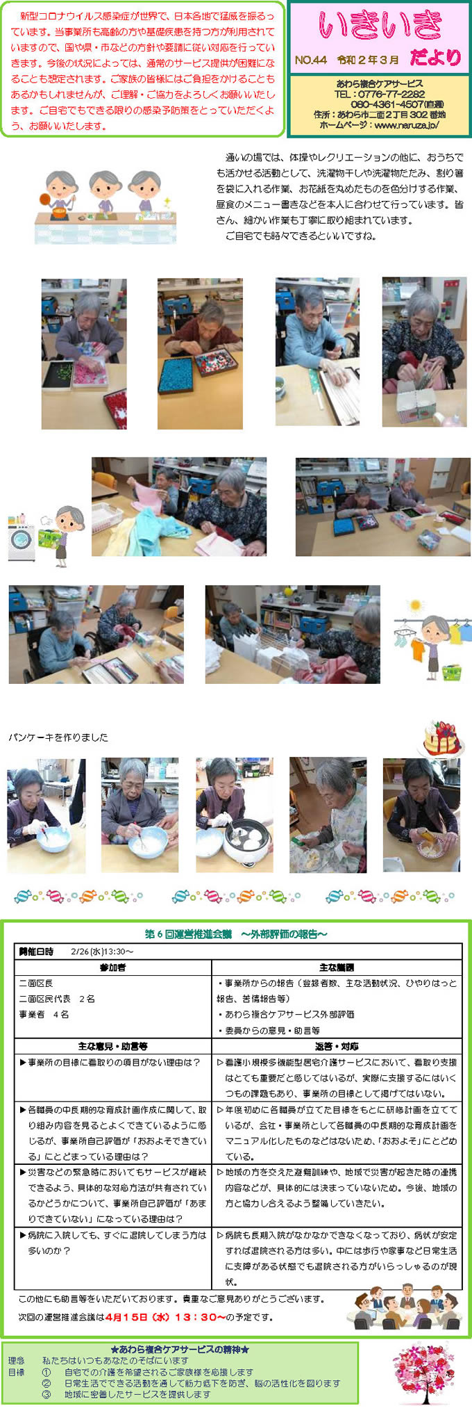あわら複合ケアサービススタッフ手づくりの月1回発行「いきいきだより」。