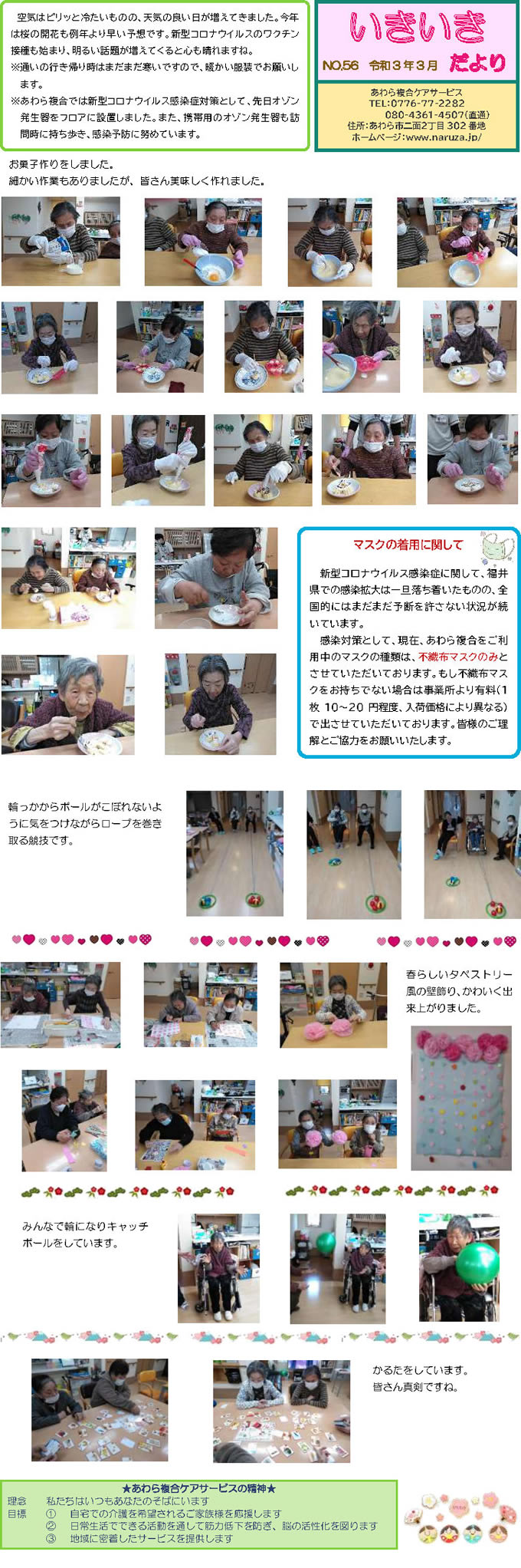 あわら複合ケアサービススタッフ手づくりの月1回発行「いきいきだより」。