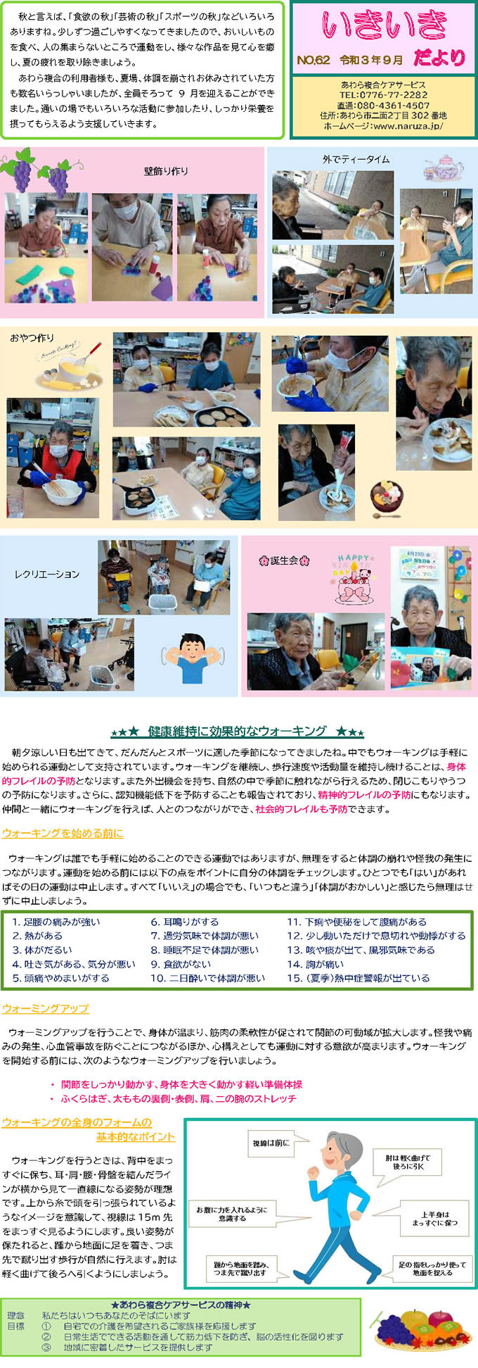 あわら複合ケアサービススタッフ手づくりの月1回発行「いきいきだより」。