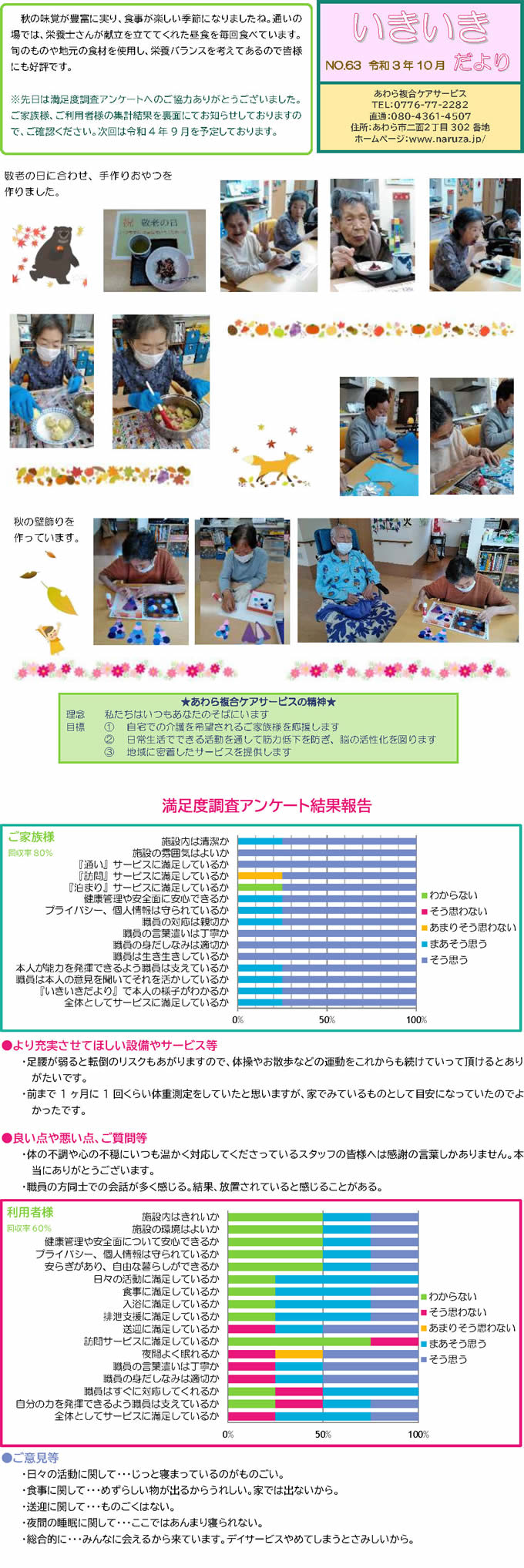 あわら複合ケアサービススタッフ手づくりの月1回発行「いきいきだより」。