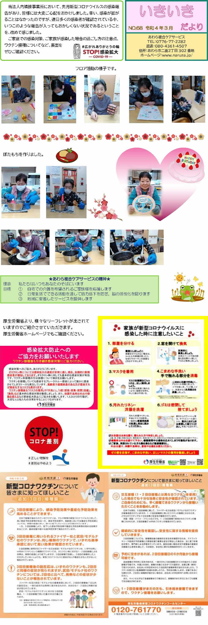 あわら複合ケアサービススタッフ手づくりの月1回発行「いきいきだより」。