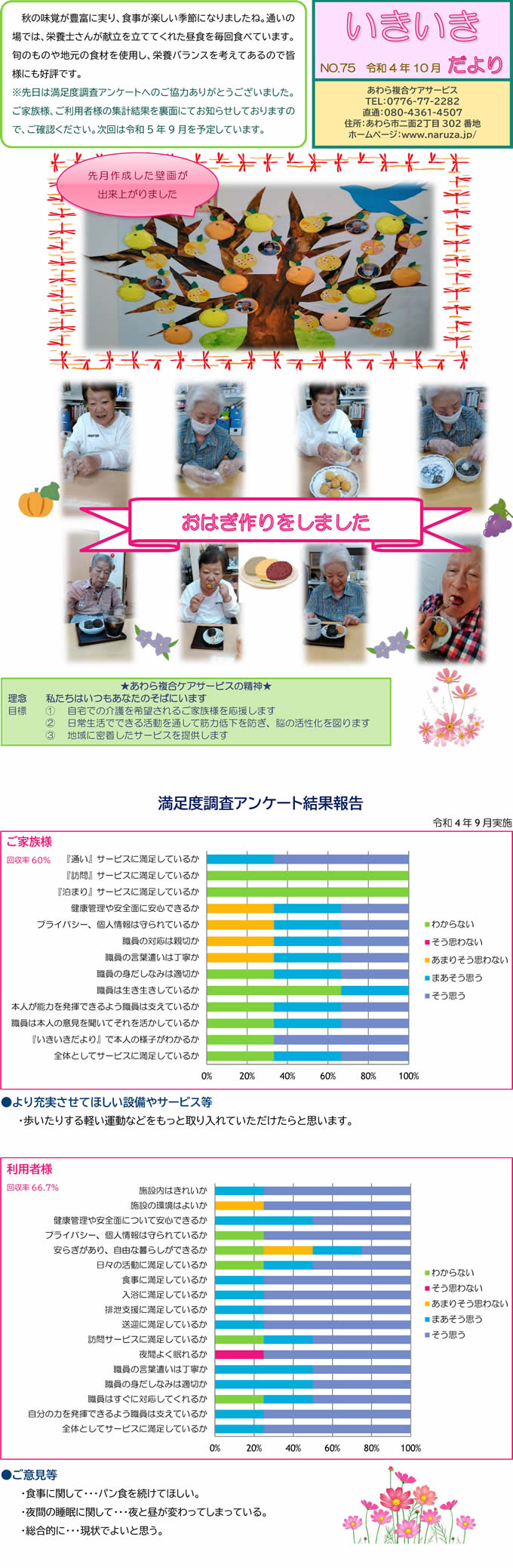あわら複合ケアサービススタッフ手づくりの月1回発行「いきいきだより」。