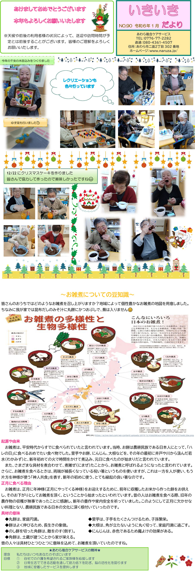 あわら複合ケアサービススタッフ手づくりの月1回発行「いきいきだより」。