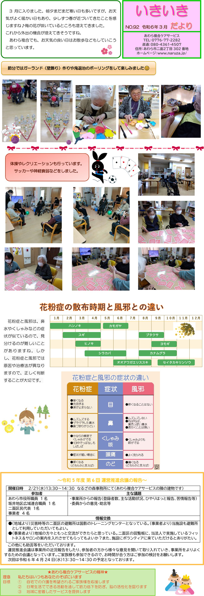 あわら複合ケアサービススタッフ手づくりの月1回発行「いきいきだより」。