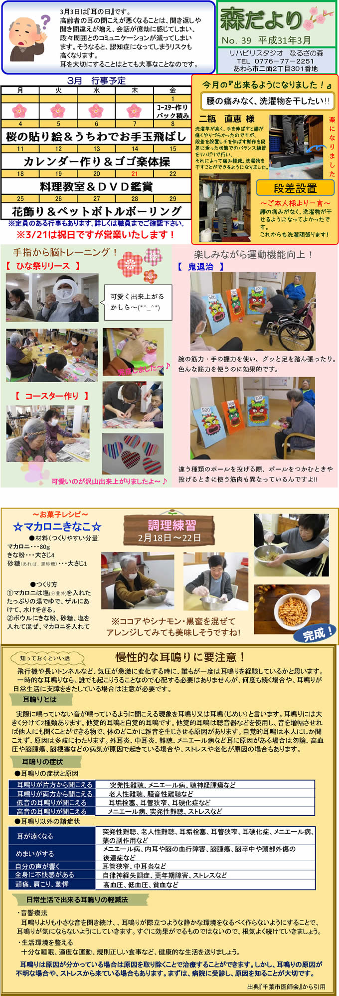 なるざの森スタッフ手づくりの月1回発行「森だより」。