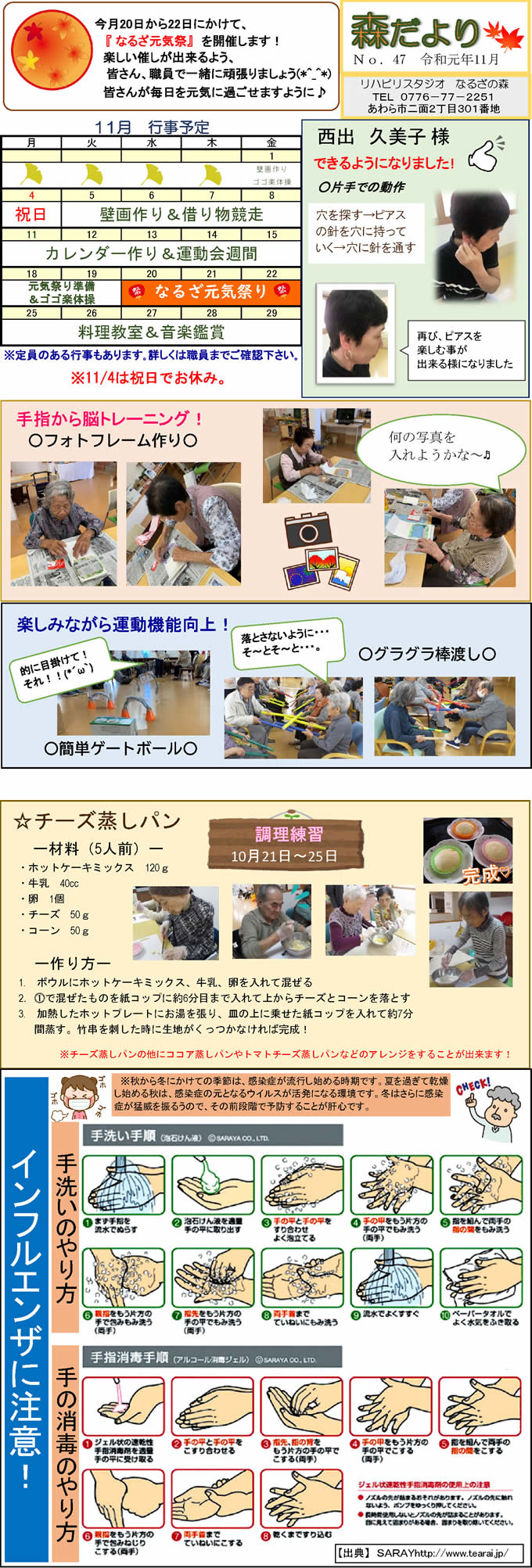 なるざの森スタッフ手づくりの月1回発行「森だより」。