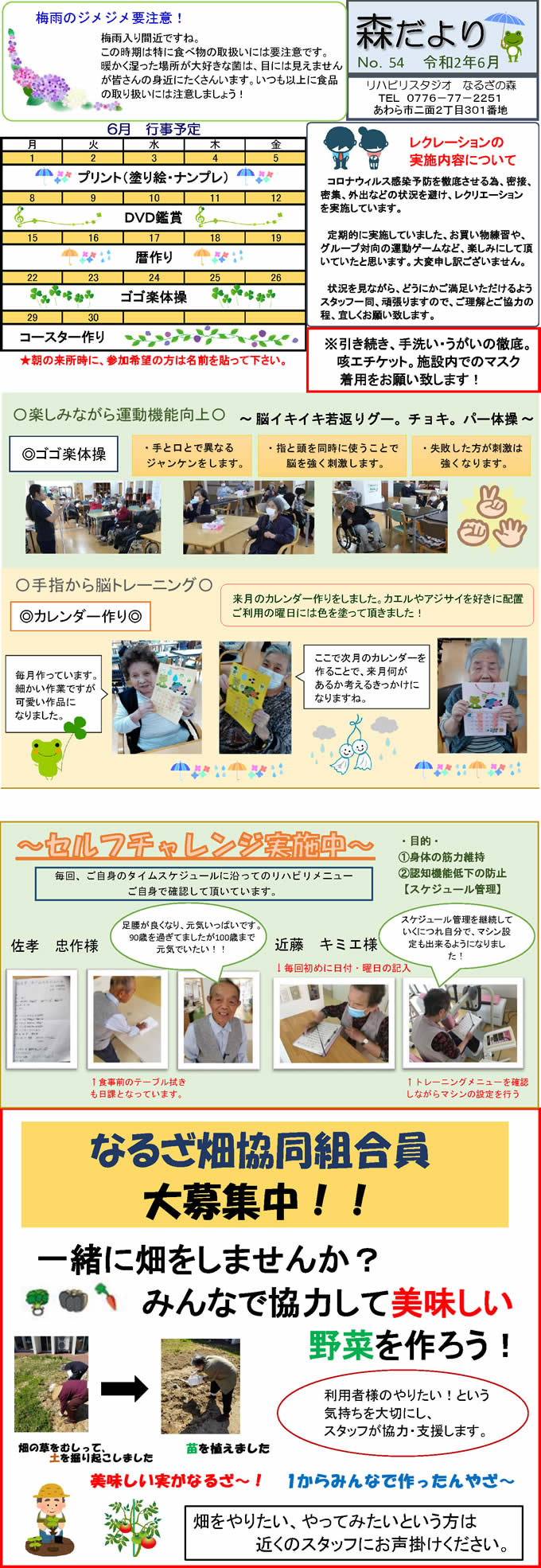 なるざの森スタッフ手づくりの月1回発行「森だより」。