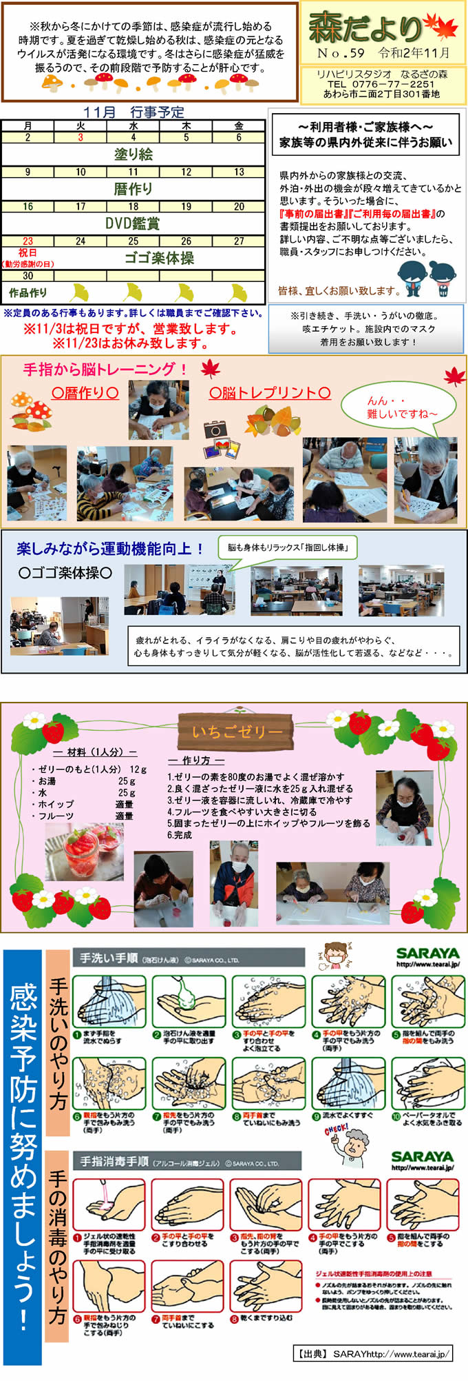 なるざの森スタッフ手づくりの月1回発行「森だより」。