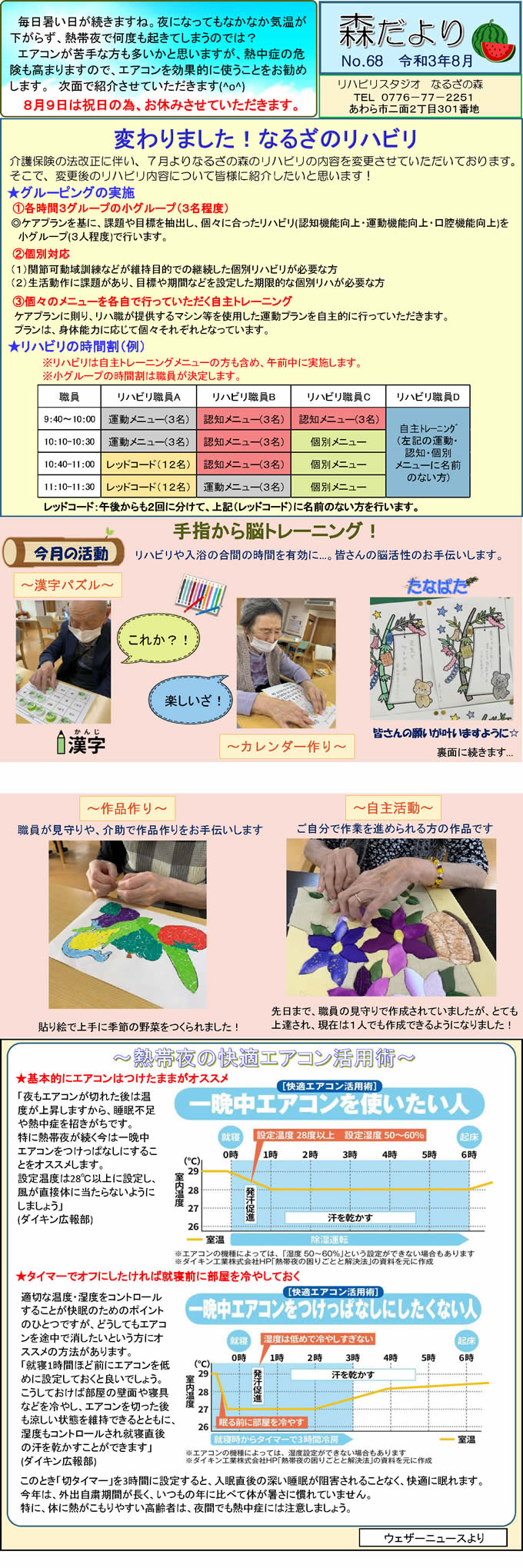 なるざの森スタッフ手づくりの月1回発行「森だより」。