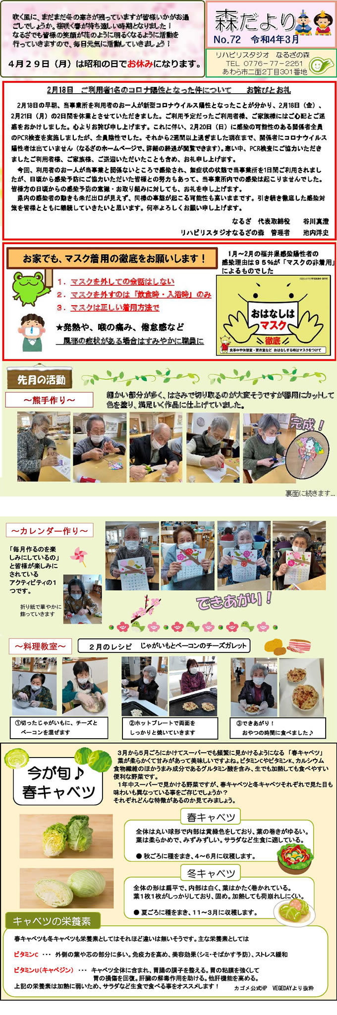 なるざの森スタッフ手づくりの月1回発行「森だより」。
