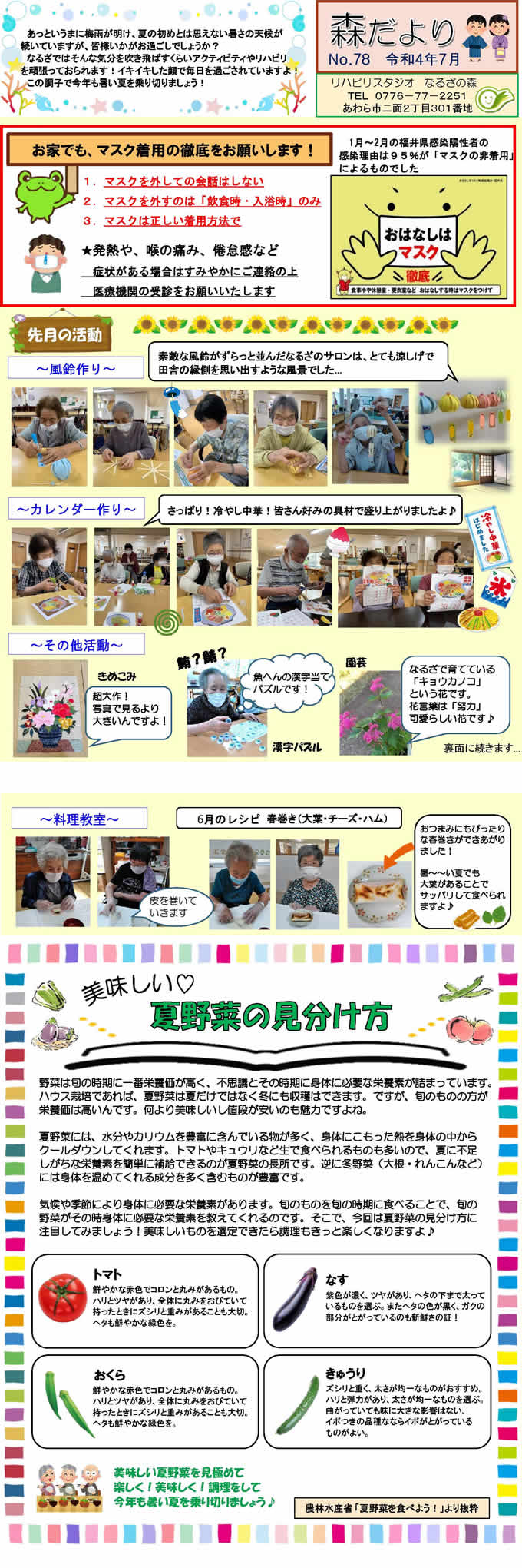 なるざの森スタッフ手づくりの月1回発行「森だより」。