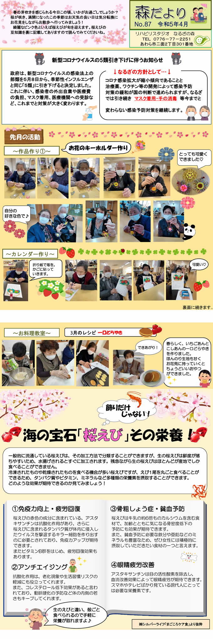 なるざの森スタッフ手づくりの月1回発行「森だより」。