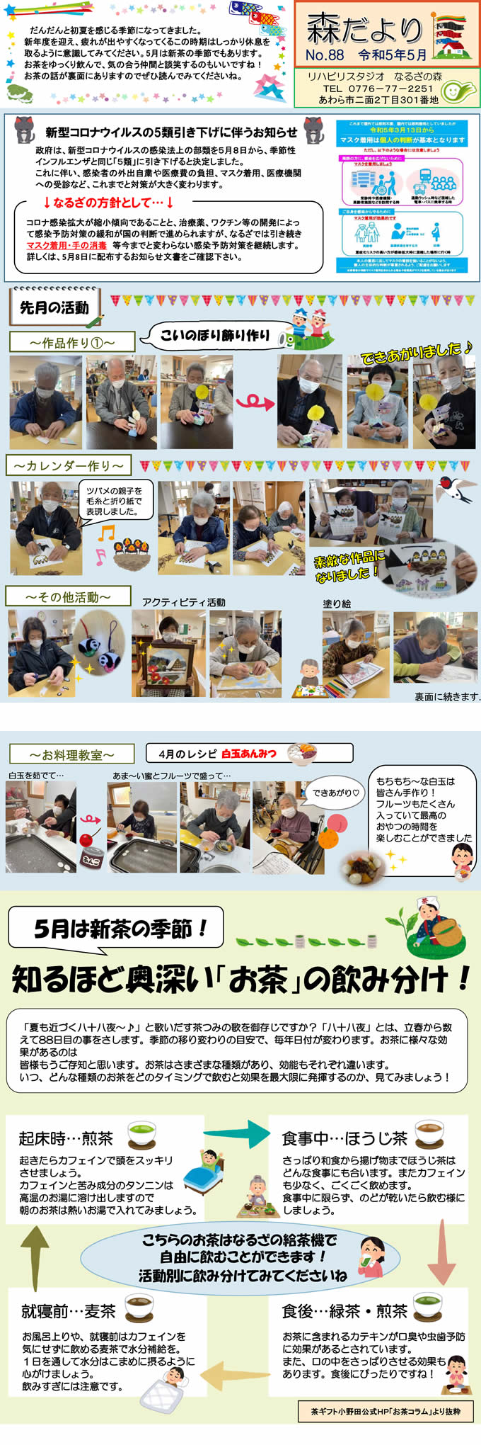なるざの森スタッフ手づくりの月1回発行「森だより」。