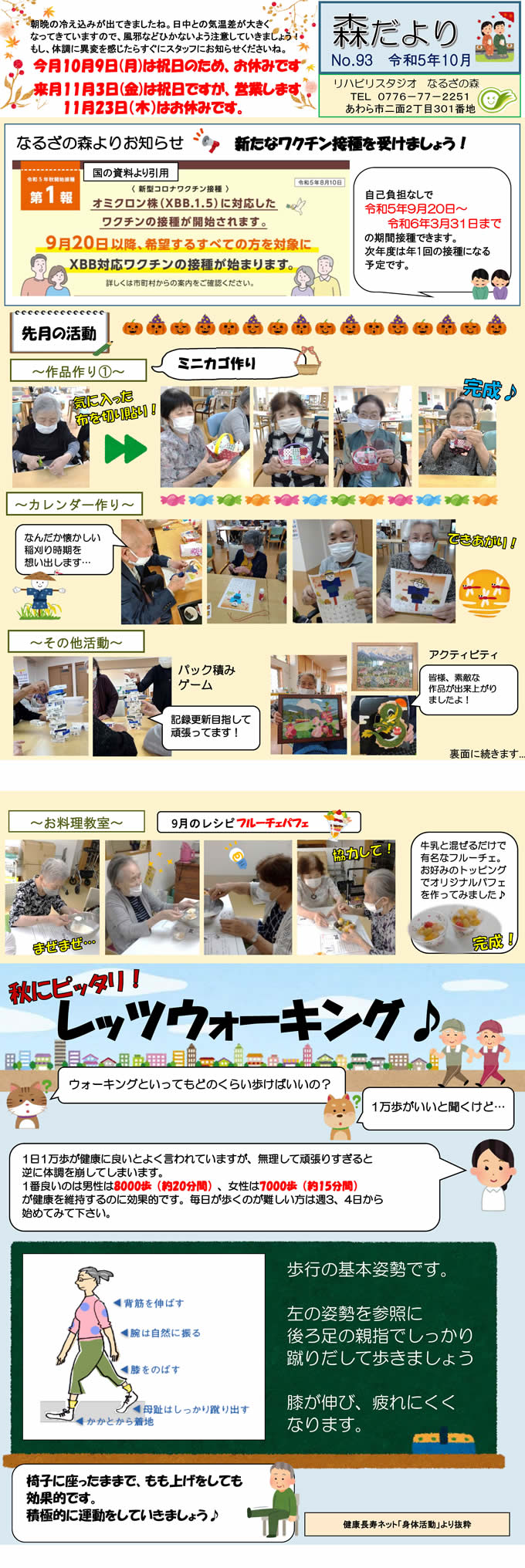 なるざの森スタッフ手づくりの月1回発行「森だより」。