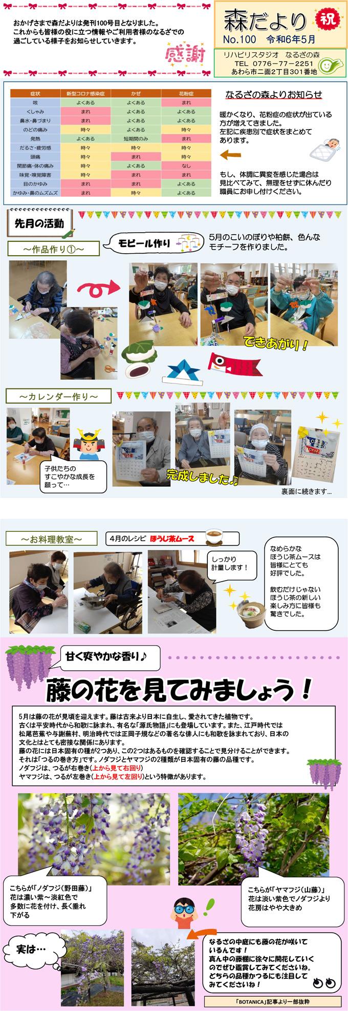 なるざの森スタッフ手づくりの月1回発行「森だより」。