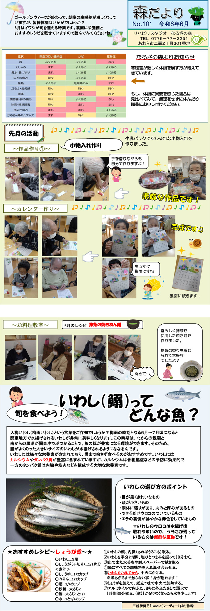 なるざの森スタッフ手づくりの月1回発行「森だより」。