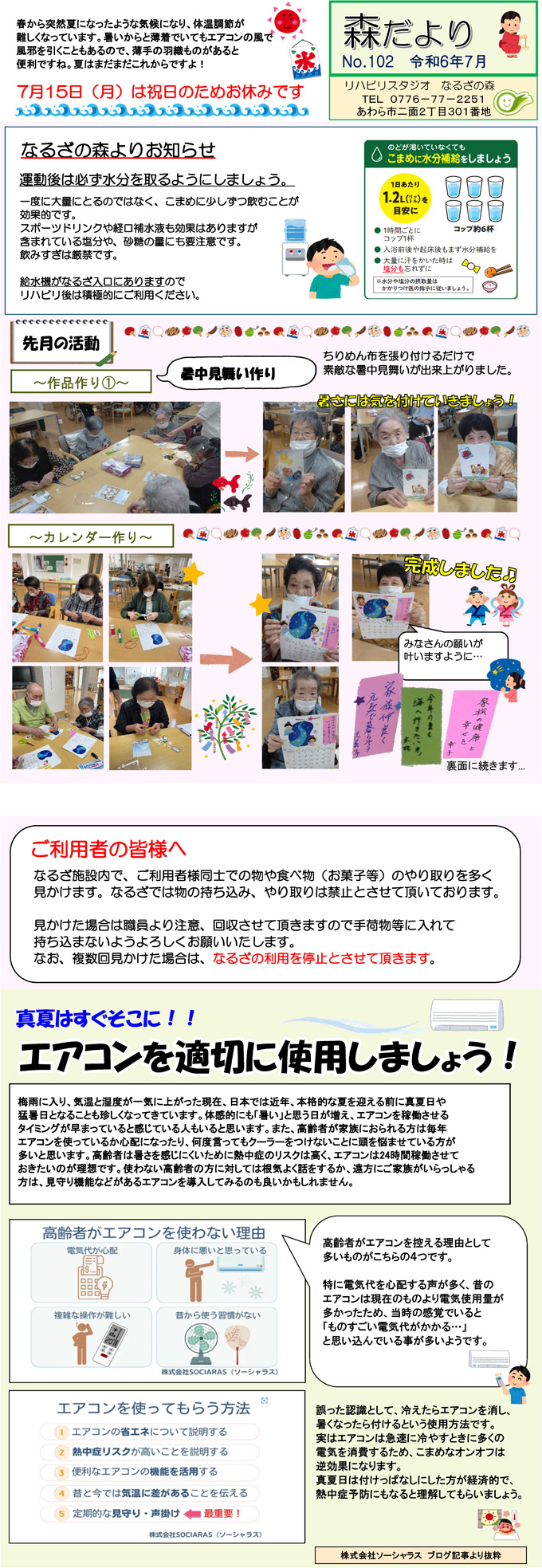 なるざの森スタッフ手づくりの月1回発行「森だより」。