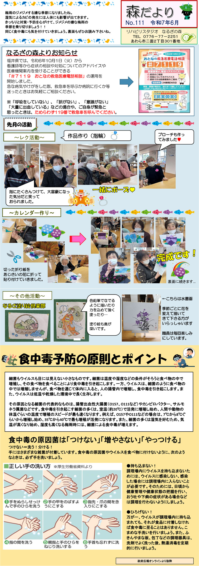 なるざの森スタッフ手づくりの月1回発行「森だより」。