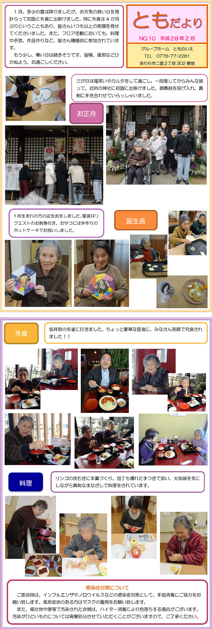 とものいえスタッフによる手作り新聞「ともだより」。