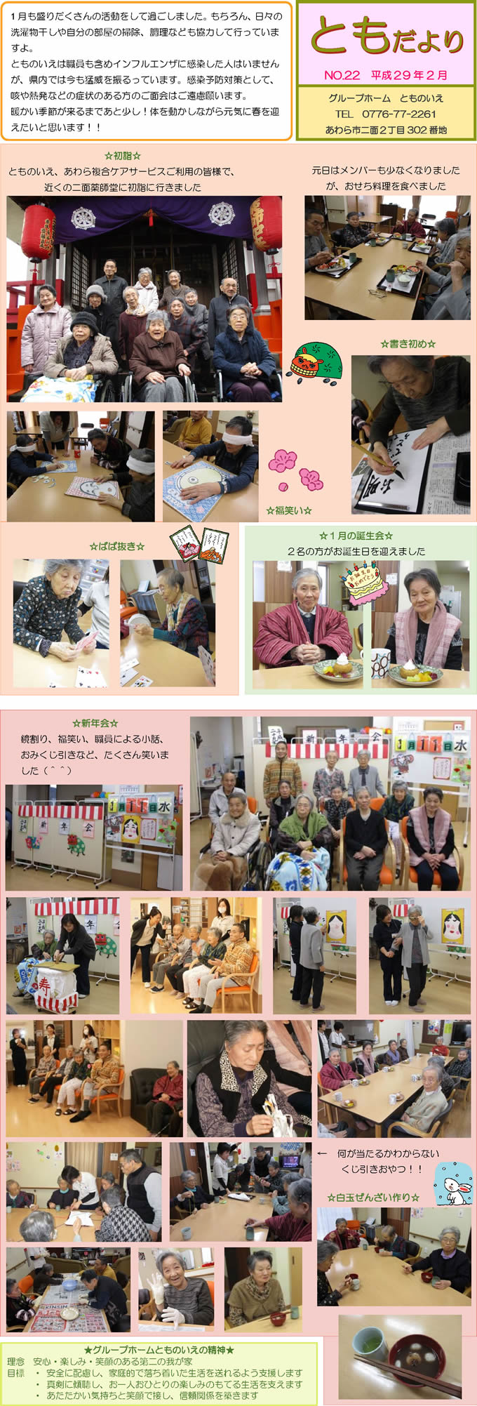 とものいえスタッフによる手作り新聞「ともだより」。