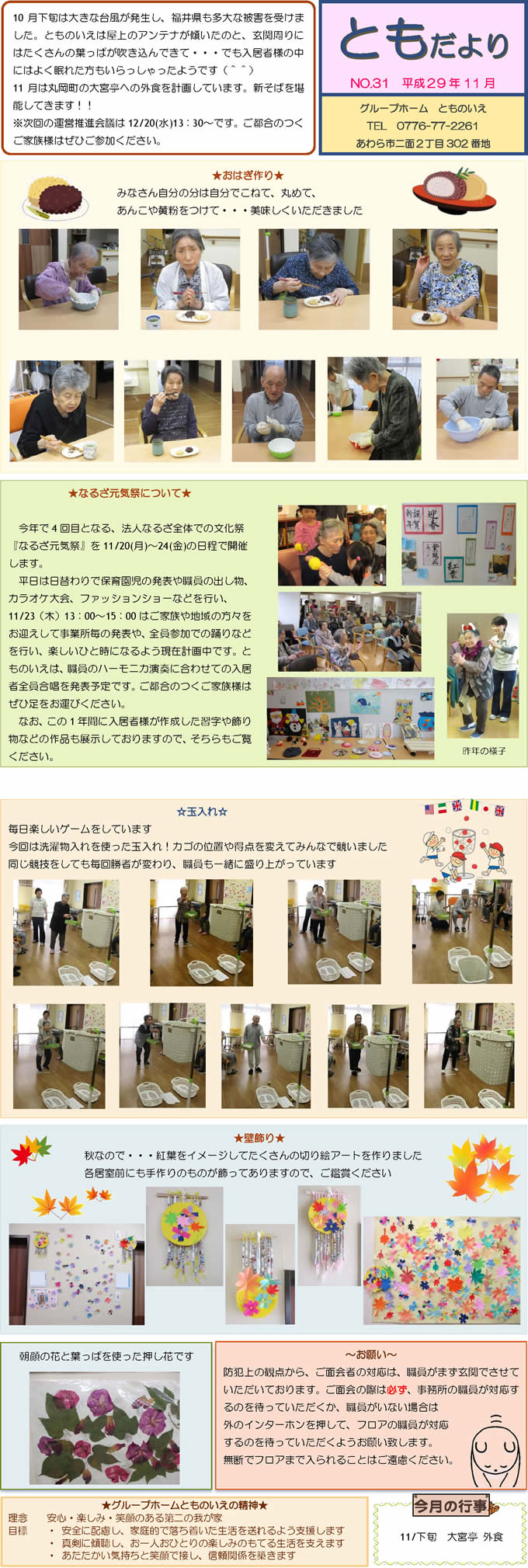 とものいえスタッフによる手作り新聞「ともだより」。