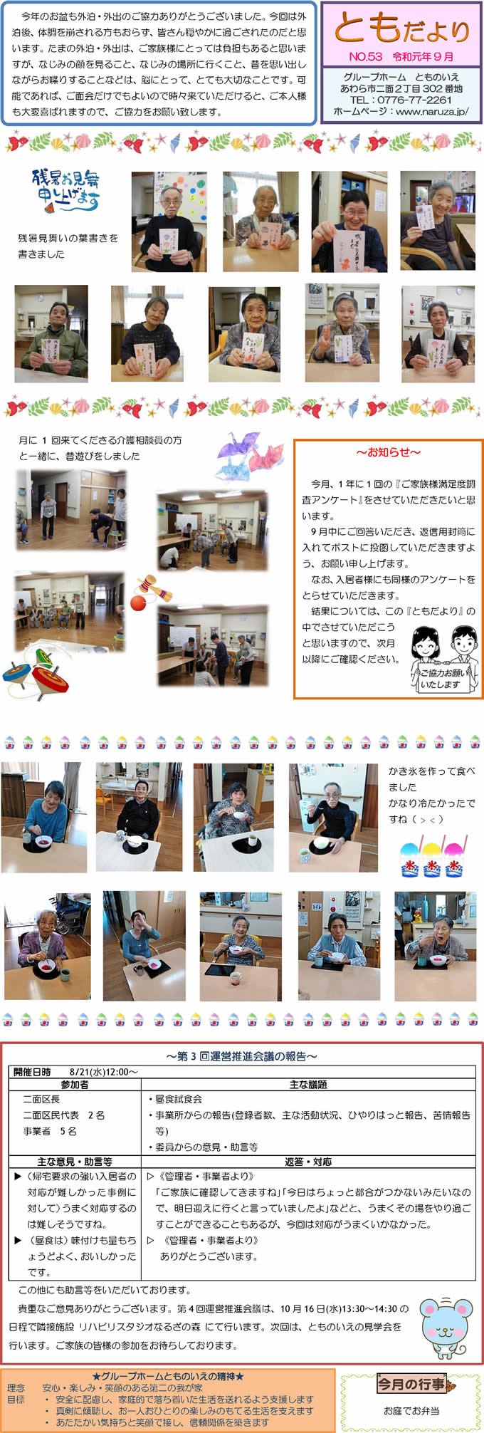 とものいえスタッフによる手作り新聞「ともだより」。