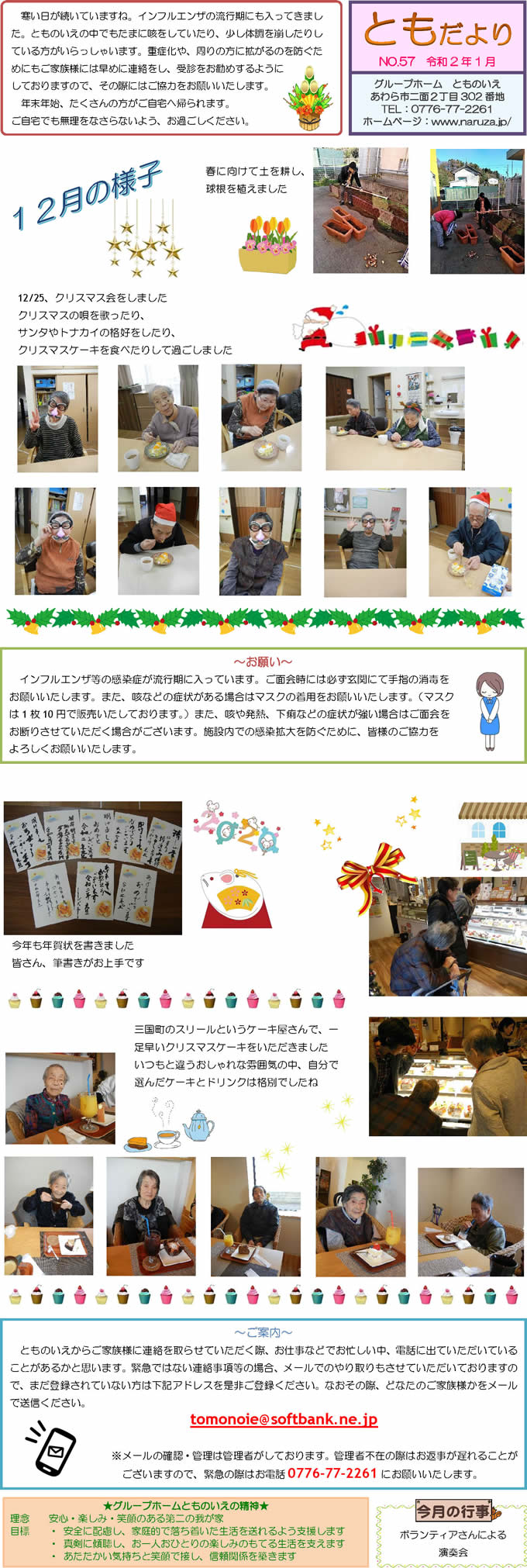とものいえスタッフによる手作り新聞「ともだより」。