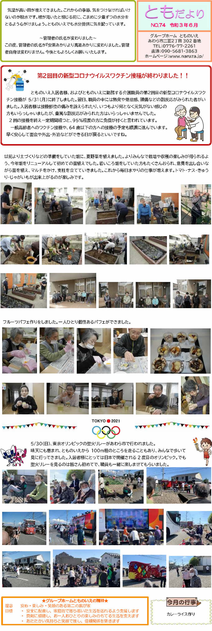 とものいえスタッフによる手作り新聞「ともだより」。