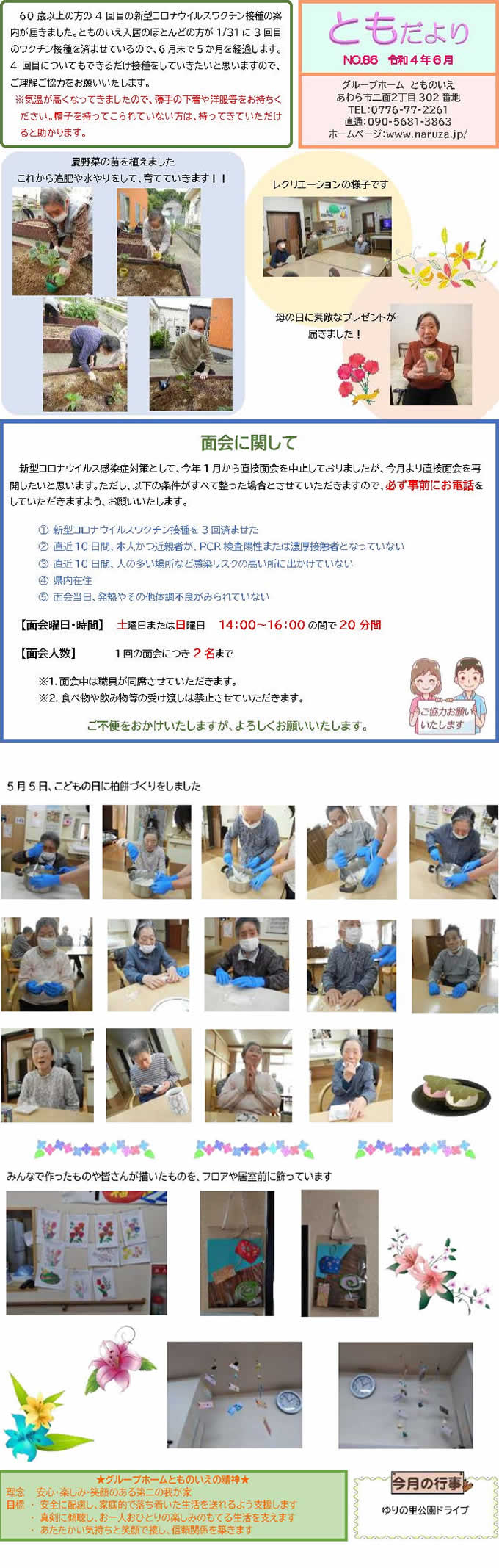 とものいえスタッフによる手作り新聞「ともだより」。