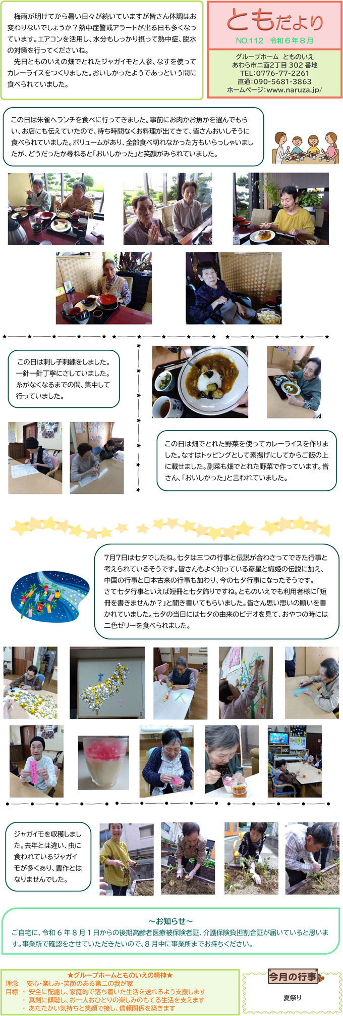 とものいえスタッフによる手作り新聞「ともだより」。