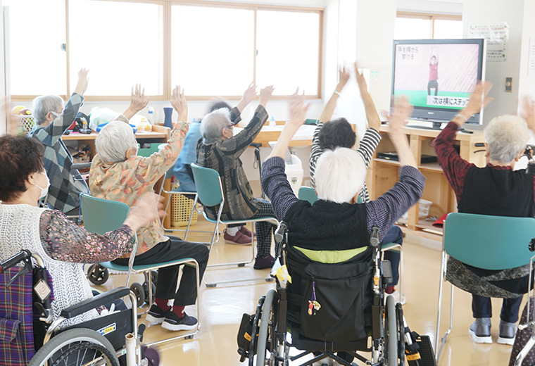 介護状態にかかわらず、できることを維持・向上させ、日常生活に「楽しみ」を広げることを目指します。