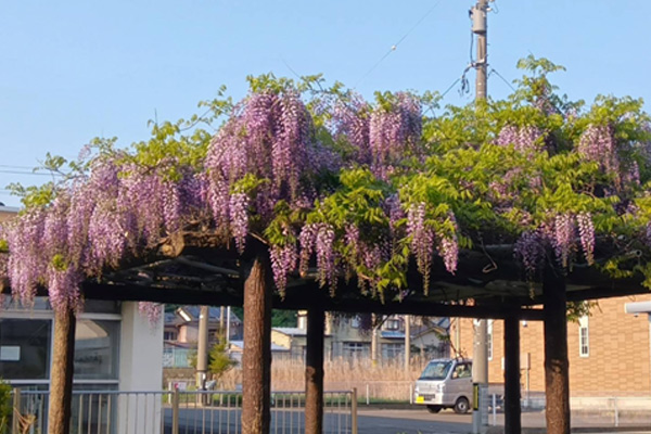 職員玄関を出た横の庭で、薄紫に咲いていた藤の花が風に揺れてとてもきれいでした。